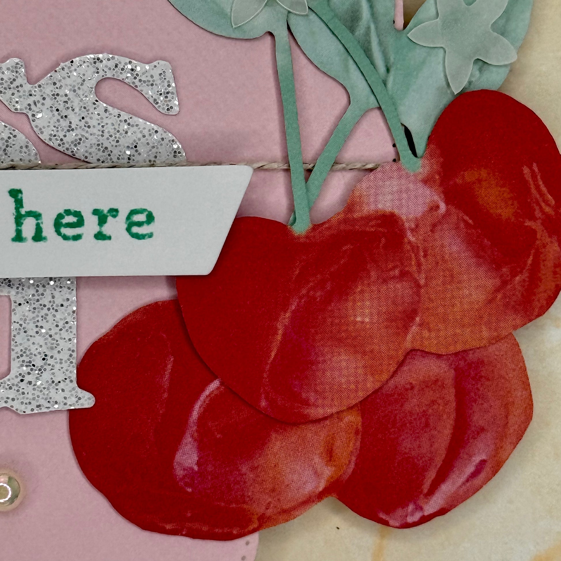 Let a loved one know they are missed with our handcrafted Greeting Card. Featuring a pink background and red cherries, this card is a perfect way to show your love and desire to be with them. So go ahead, order now and make someone's day!